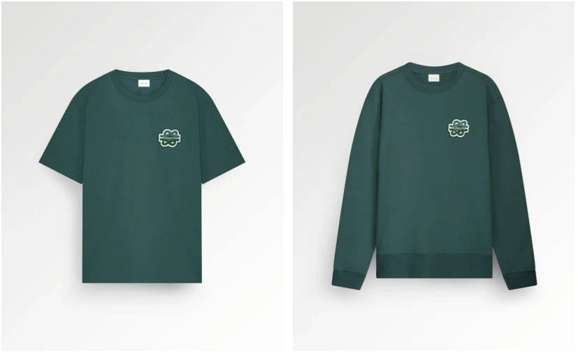 De collectie met deze kleur is niet enorm uitgebreid op dit moment. Er zijn een aantal T-shirts en sweaters. Maar ook een paar loafers met tinten van dennen groen.